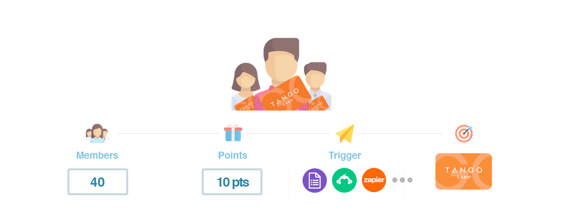 Select a gift from our catalog (Tango Card, digital gift cards, prepaid cards, brand swag) or upload your own gift and configure the rules.